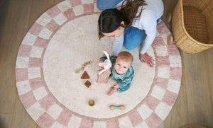 Checkered Charm Washable Round Organic Cotton Rug